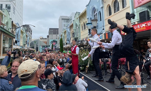Jacinda Ardern, New Zealand's prime minister, center, and Chris Hipkins, minister for Covid response, right, during a news conference in Wellington, New Zealand, on Tuesday, April 6. Photo: VCG