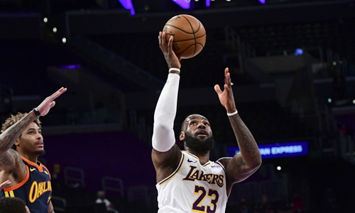 Golden State Warriors guard Stephen Curry goes to the basket against the Oklahoma City Thunder on Wednesday in Oklahoma City. Photo: VCG