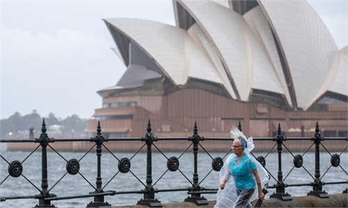 A woman walks in the rain in Sydney, Australia, March 20, 2021. Photo: Xinhua