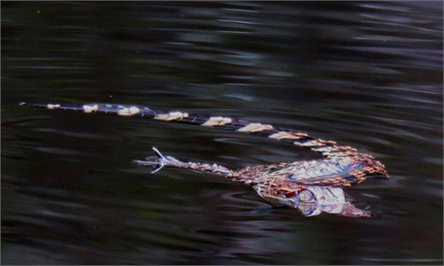 According to an expert surnamed Kong from a local safari zoo, the animal is a Siamese crocodile aged about 3 to 4 months, and is capable of growing up to 4 meters long as an adult.
