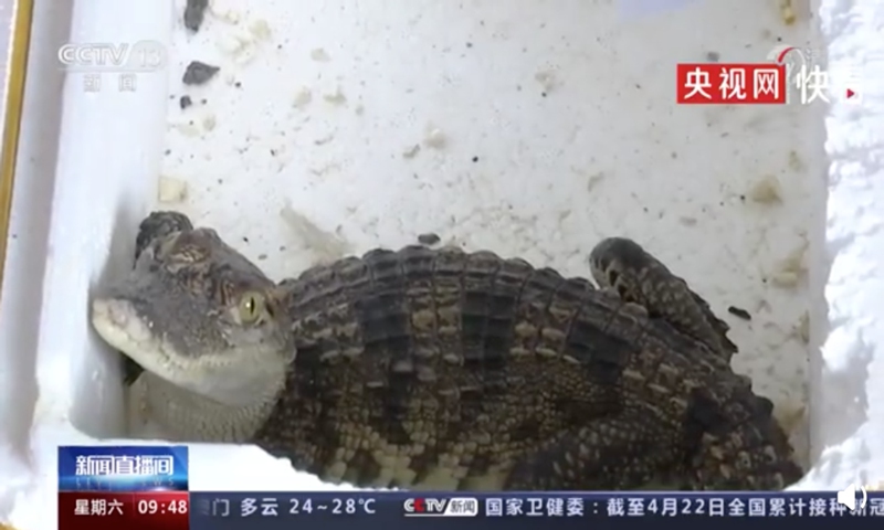 When a resident from Dezhou in Shandong opened the package expecting to see a fish his child bought online, he found a 0.5-meter-long crocodile in the foam box.