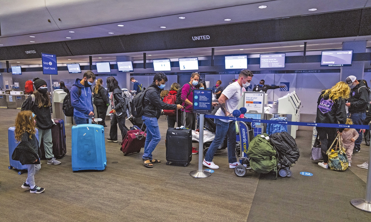 Passengers wearing protective masks check in at the San Francisco International Airport boarding area, in San Francisco, California, the US on November 24, 2020. Photo: VCG