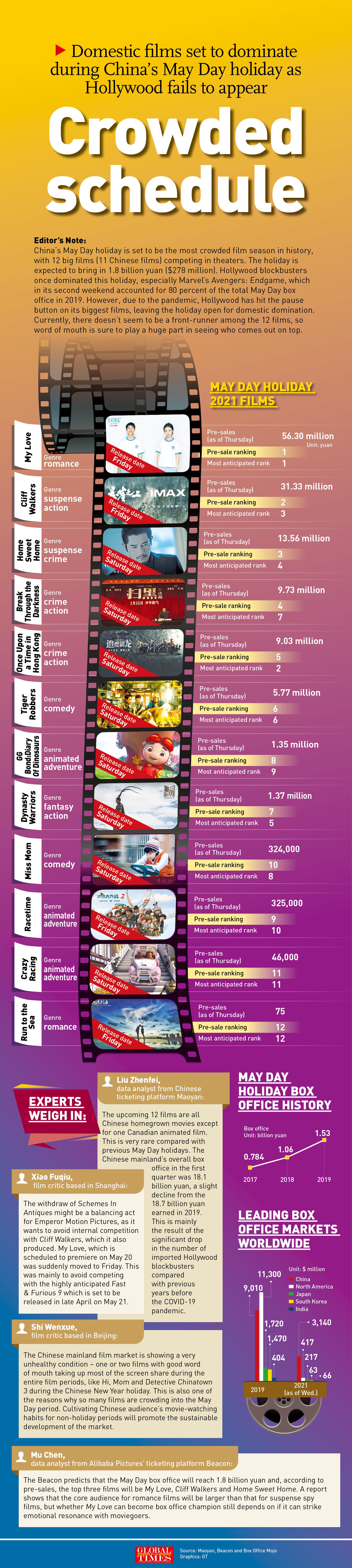 Domestic films set to dominate during China’s May Day holiday as Hollywood fails to appear