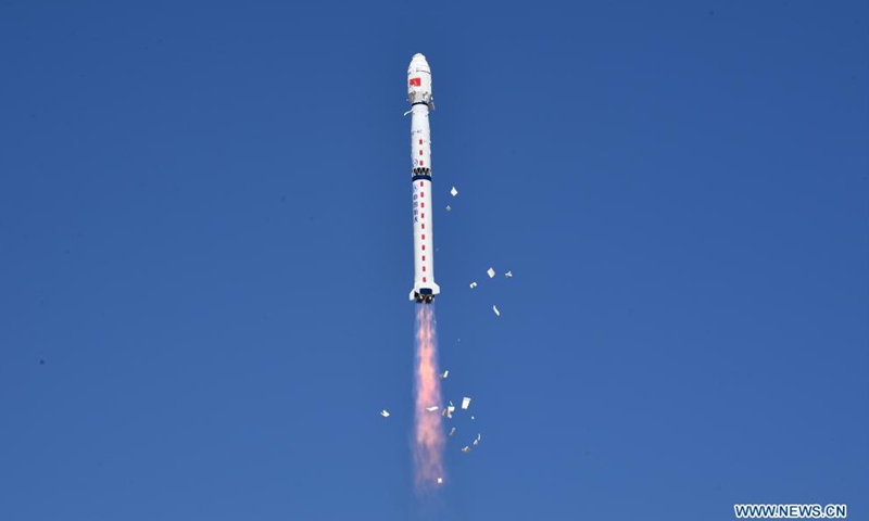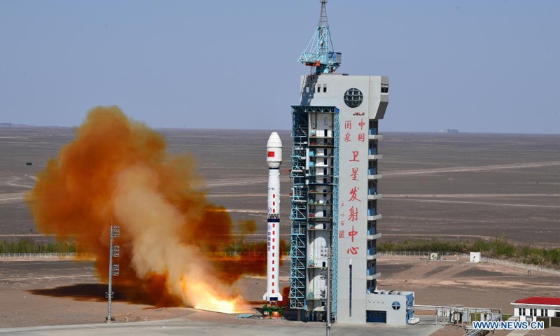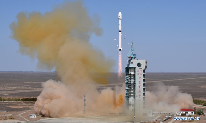 A Long March-4C rocket carrying Yaogan-34 satellite blasts off from the Jiuquan Satellite Launch Center in northwest China on April 30, 2021. China successfully sent a new remote sensing satellite, Yaogan-34, into space from the Jiuquan Satellite Launch Center in northwest China at 3:27 p.m. Friday (Beijing Time). The Yaogan-34 satellite was carried by a Long March-4C rocket and successfully entered its planned orbit.Photo:Xinhua