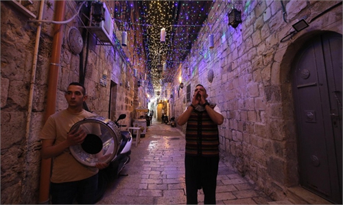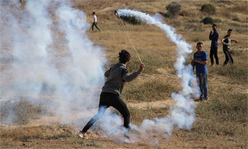 An Israeli policeman speaks with Palestinian youths lying prone on the ground at Jerusalem's Al-Aqsa mosque compound on Monday, after gunfire was shot amidst clashes with Israeli security forces ahead of a planned march to commemorate Israel's takeover of Jerusalem in the 1967 Six-Day War. Hundreds were wounded in new clashes Monday between Palestinians and Israeli security forces in Jerusalem. Photo: AFP
