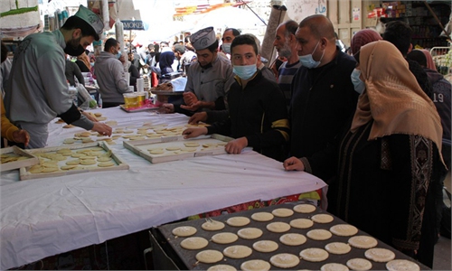 Muslim worshippers arrive to attend Eid al-Fitr prayer, which marks the end of the holy fasting month of Ramadan, at al-Azhar mosque in the Egyptian capital Cairo, Egypt, on Thursday. Ramadan is a time of spiritual reflection, self-improvement, and heightened devotion and worship. Muslims are expected to put more effort into following the teachings of Islam. Photo: AFP