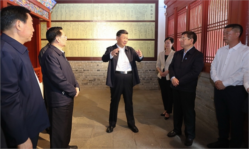 Students from China University of Petroleum experience traditional Chinese medicine (TCM) culture at the TCM cultural base in Traditional Chinese medical hospital of Huangdao District, Qingdao, east China's Shandong Province, April 23, 2021. (Photo: Xinhua)