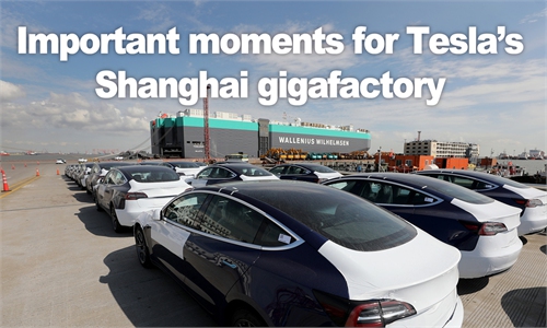 Photo taken on Oct. 26, 2020 shows the Tesla China-made Model 3 vehicles at its gigafactory in Shanghai, east China. Photo: Xinhua
