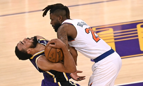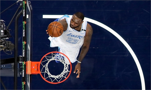 LeBron James of the Los Angeles Lakers drives to the basket against the New Orleans Pelicans on Sunday in New Orleans. Photo: VCG