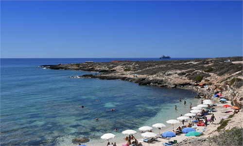 Migrants warmed by emergency blankets arrive on a boat of the Italian Guardia di Finanza law enforcement agency on Monday to disembark on the southern Italian Pelagie Island of Lampedusa. More than 1,400 migrants arrived on the island of Lampedusa over the weekend, sparking calls from far-right politicians for action to stem the flow. Photo: AFP