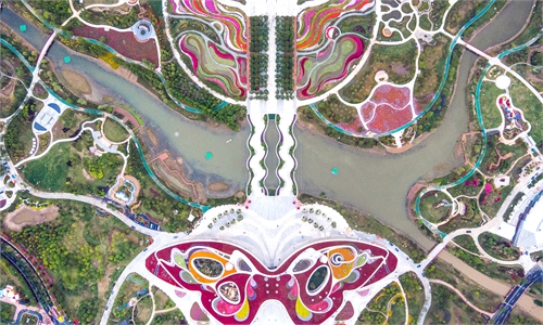 Visitors walk along the flower ocean at the 10th China Flower Expo, which kicked off on Friday. Photo:Yang Hui/GT