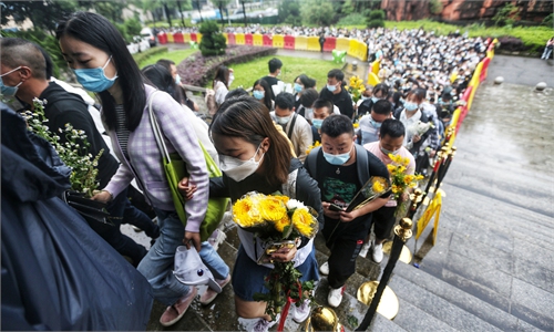 More than 100,000 people come to bid farewell to Yuan Longping in rain at Mingyangshan Funeral Home in Changsha, Central China's Hunan Province on Sunday. Photo: Cui Meng/GT