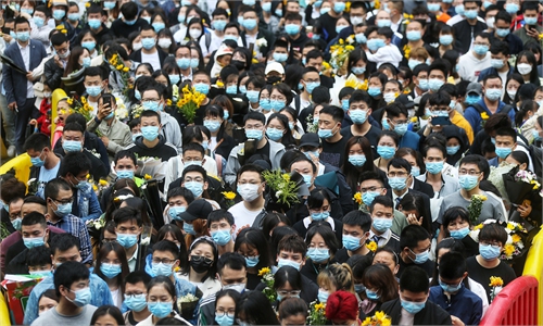 The funeral of Professor Yuan Longping is held at Mingyangshan Funeral Home in Changsha, Central China's Hunan Province on Monday. Thousands of people went there with flowers to show their respect. Yuan passed away on Saturday at the age of 91. Photo: Cui Meng/GT