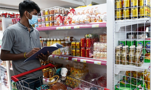 People purchase essential food items as the government imposed travel restrictions and two-week lockdown to curb the spread of COVID-19 in Colombo, Sri Lanka on Tuesday. Sri Lanka extended a week-long lockdown until June 7. Photo: AFP