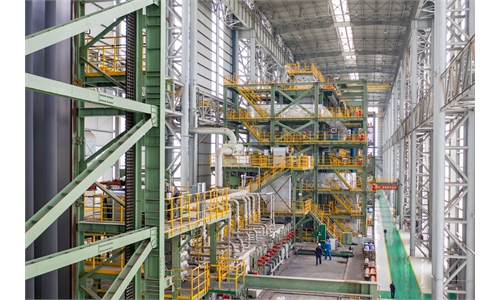 A steel manufacturing firm in Taizhou, East China’s Jiangsu Province, is busy making supporting equipment for overseas mining on Thursday. Domestic and international demand continues to pick up, and opportunities brought by carbon neutrality and new infrastructure have led to a rapid rise in industrial investment. Photo: cnsphoto