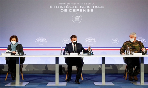 Rwandan President Paul Kagame (left) and French President Emmanuel Macron (second left) inspect the Guard of Honor in Kigali on Thursday. Macron arrived in Rwanda for a highly symbolic visit aimed at moving on from three decades of diplomatic tensions over France's role in the 1994 genocide in the country. Photo: AFP