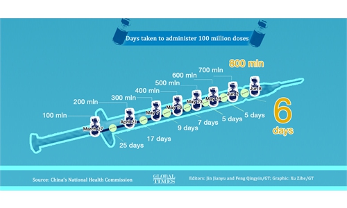 accelerated constantly. Finishing the second 100 million doses took only 25 days, but the sixth 100 million only took five days, according to figures released by the NHC.