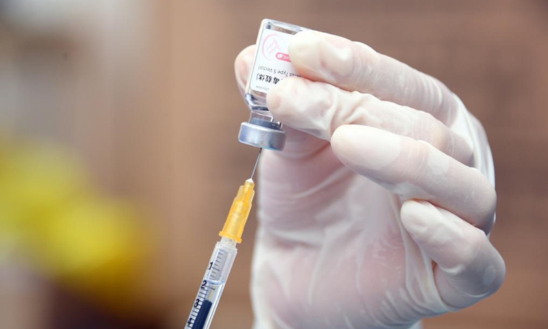 A medical worker prepares to administer a dose of the recombinant COVID-19 vaccine (adenovirus type 5 vector) which requires only one shot at a temporary vaccination site in Haidian District of Beijing, capital of China, May 20, 2021.(Photo: Xinhua)