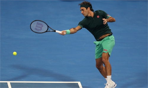 Roger Federer plays a forehand during his men's singles third-round match against Dominik Koepfer at the 2021 French Open on Saturday in Paris. Photo: VCG