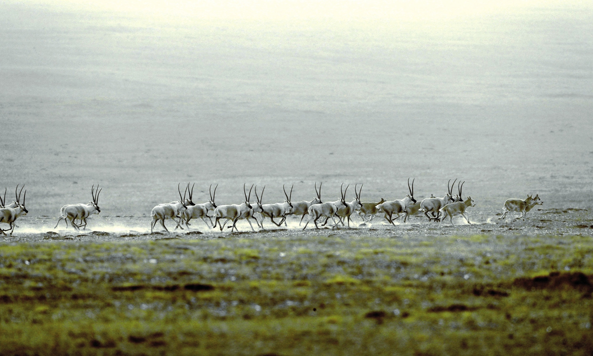 Tibetan antelopes in Northwest China's Qinghai Province Photo: Courtesy of Ge Yuxiu