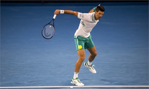 Novak Djokovic in action during the match against Lorenzo Musetti at the French Open on Monday in Paris. Photo: VCG