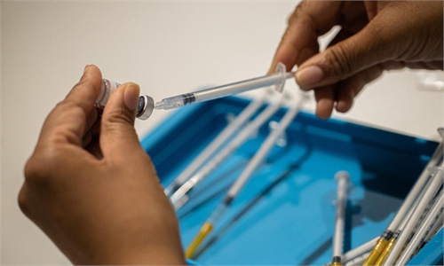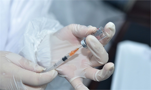 Local newspaper reports local residents taking Sinopharm's jab. Photo: Global Times