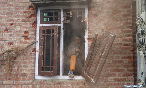 Government forces patrol an area during a rainfall in Srinagar, the summer capital of Indian-controlled Kashmir on Tuesday. Photo: AFP