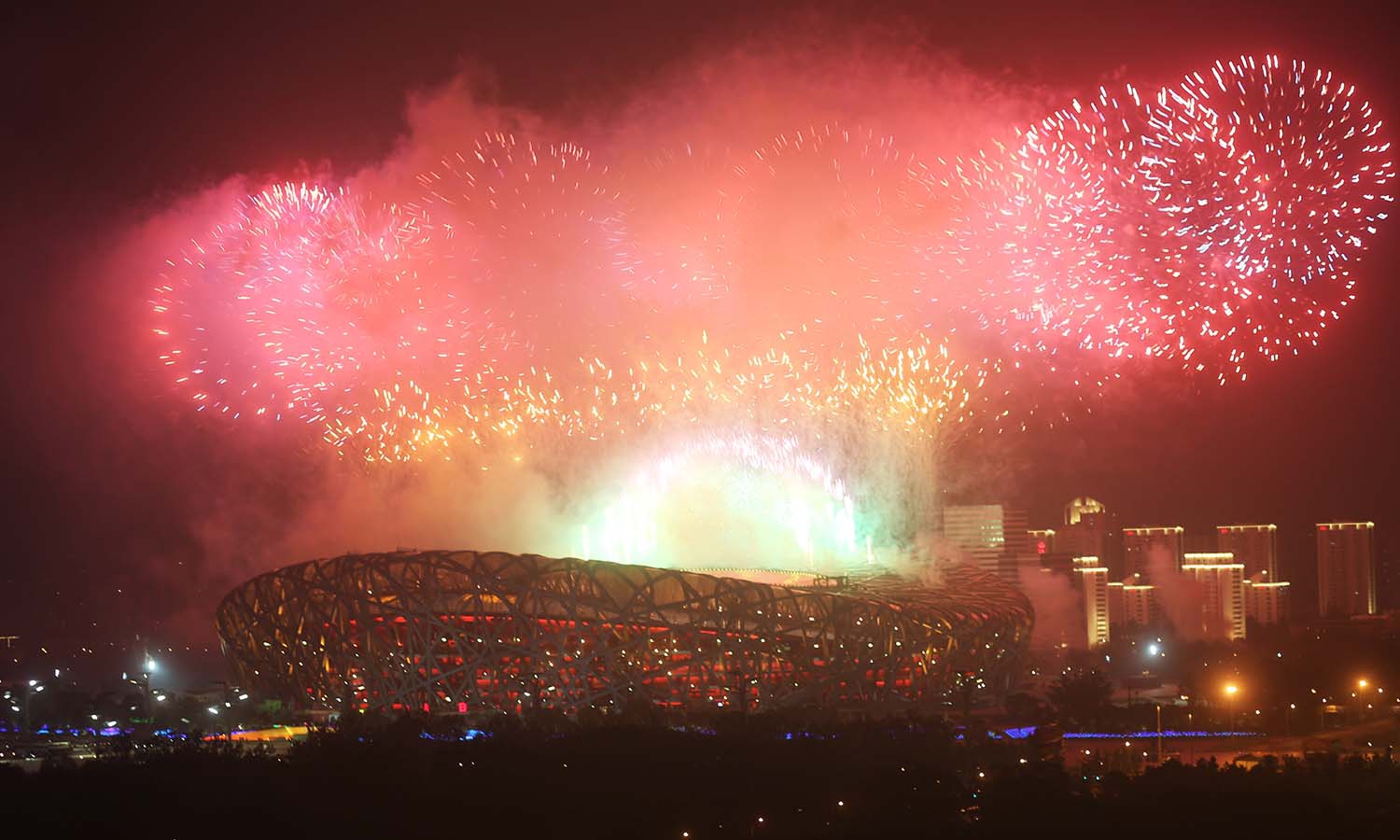 On the giant screen at the center of the stage, the golden Party emblem shined against the red curtain in gilded fonts with "1921" and "2021" written on both sides. Gorgeous fireworks flew up to celebrate the centenary of the founding of the CPC in the sky above the National Stadium.