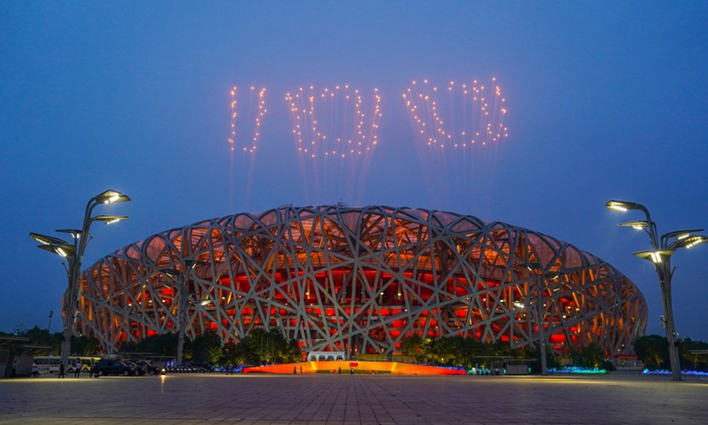 Fireworks are seen above the National Stadium in Beijing, capital of China, on the evening of June 28, 2021.(Photo: Xinhua)