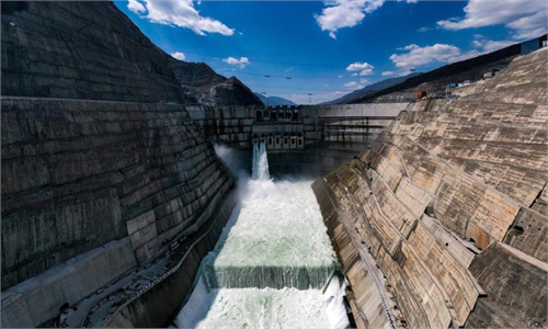 The Baihetan Dam opens to release water. Photo: Lin Xiaoyi/GT