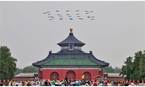 Fifteen J-20 stealth fighter jets soared past Beijing skies in formation during the Communist Party of China's (CPC) centenary celebrations on Thursday, marking the largest number of the country's most advanced warplane displayed to the general public in a single event, with analysts saying that the aircraft has started mass production and demonstrated capability to safeguard the country.