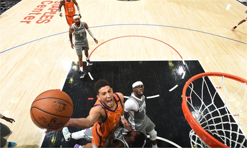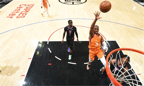 Chris Paul of the Phoenix Suns drives to the basket against the Milwaukee Bucks on Tuesday in Phoenix, Arizona. Photo: VCG