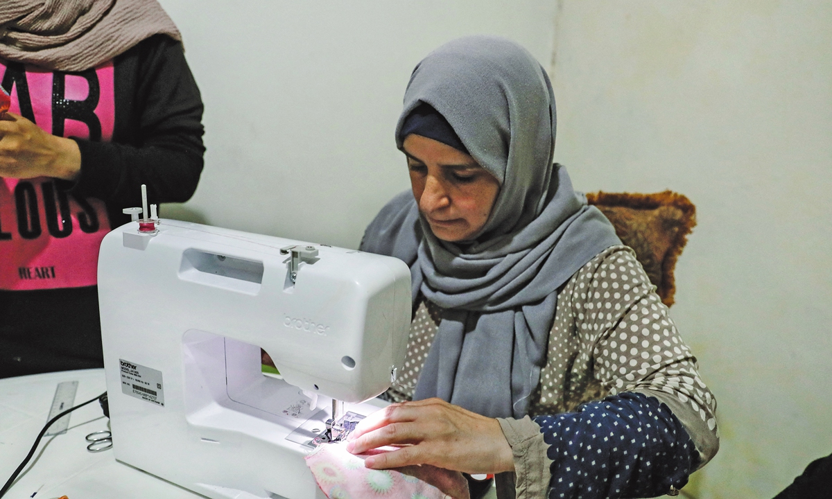 Rima Ali, a Syrian mother of six, was among dozens learning to make the pads.