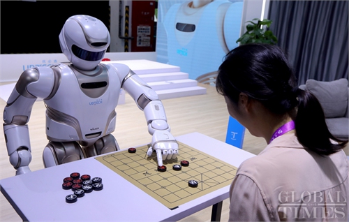 Vsitors experience artificial intelligence that detects and interprets human emotional signals at 2021 WAIC in Shanghai on Wednesday. Photo: Chen Xia/GT
