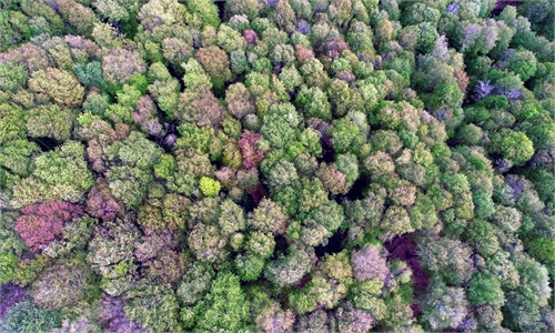 Solar panels used to generate renewable energy are seen at the Sustainability Pavilion during a media tour at the Dubai Expo 2020 on January 16. Photo: VCG