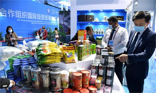 Autonomous guided vehicles line up to lift containers from a vessel docked at the Port of Qingdao in East China's Shandong Province on Thursday. The automated container terminal, employing hydrogen energy and 5G technology, handles 48 standard containers per hour. Chinese ports are expanding the use of technology, with a terminal in the Port of Guangzhou in South China's Guangdong entering the final phase of installations in June. Photo: VCG