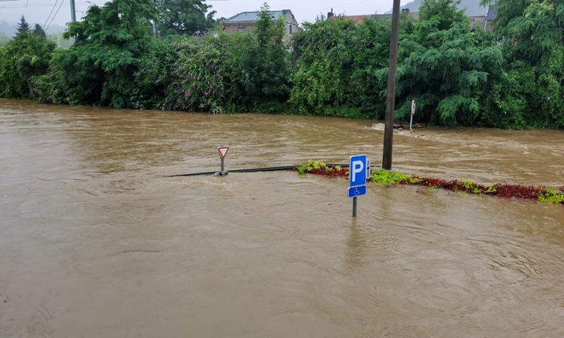 Photo taken with a mobile phone on July 15, 2021 shows a flooded street in Liege, Belgium. Torrential rain has caused severe disruptions in Belgium on Thursday, with entire streets and villages inundated by heavy flooding. Photo:Xinhua