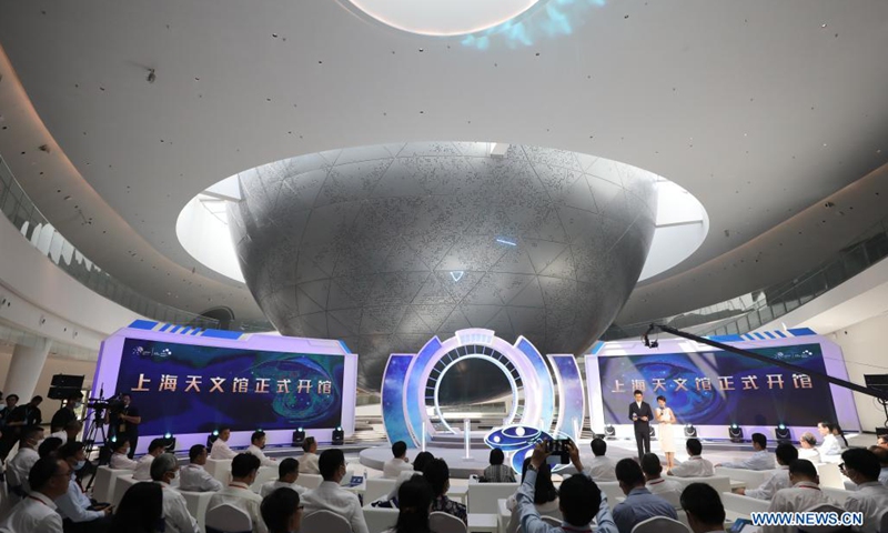 Photo shows the opening ceremony of the Shanghai Astronomy Museum in east China's Shanghai, July 17, 2021. The Shanghai Astronomy Museum, the world's largest planetarium in terms of building scale, officially opens on Saturday and will be open to the public from Sunday. Covering an area of approximately 58,600 square meters, the museum is located in the China (Shanghai) Pilot Free Trade Zone Lingang Special Area. It is a branch of the Shanghai Science and Technology Museum.(Photo: Xinhua)