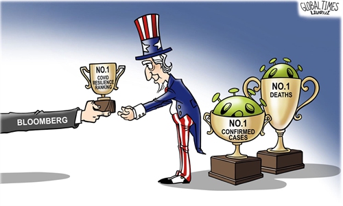 The recent COVID Resilience Ranking released by Bloomberg has aroused widespread controversy. In its ranking, Bloomberg takes into account "reopening progress" as a key factor in gauging the resilience of different countries and regions in the fight against coronavirus. However, such an evaluation system does not take into account the differences of epidemic prevention modes in different countries, and there are loopholes in the scientificity and strictness in setting of indicators. It is hard to believe that the US is one of the world's top anti-epidemic countries, especially since more than 34 million COVID-19 cases have been confirmed and more than 609,000 people have died as a result of the virus in the US.