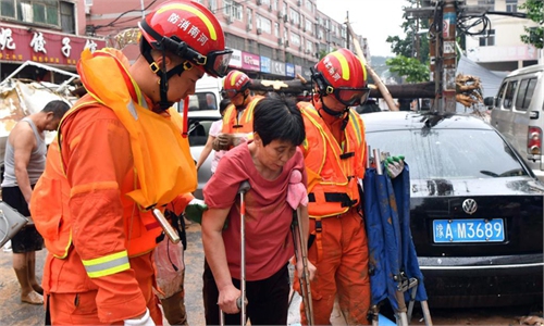Mihe county in provincial capital Zhengzhou was flooded by two rivers on Tuesday, leaving over 20,000 residents stranded.