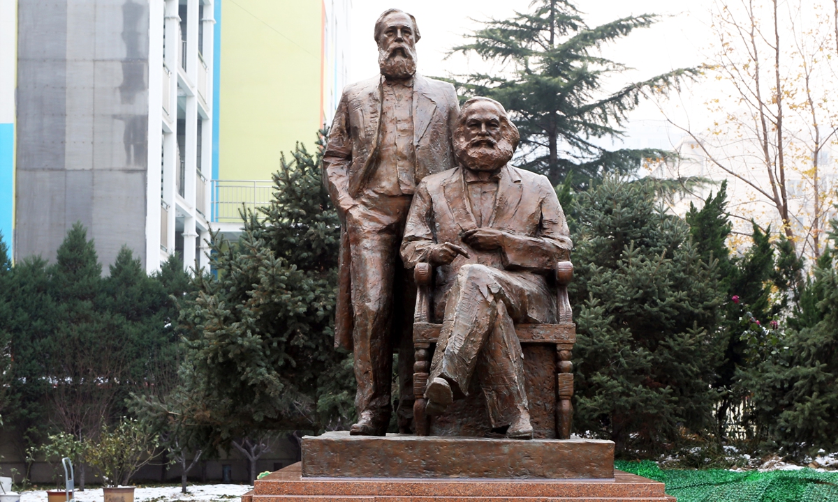 The sculpture of Marx and Engels was first unveiled at the Central Compilation and Translation Bureau of the Communist Party of China on January 27, 2015.
