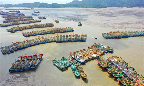 Huge waves caused by typhoon In-Fa were seen crashing in Wenling city, Taizhou in East China's Zhejiang Province on July 24, 2021. Photo: VCG