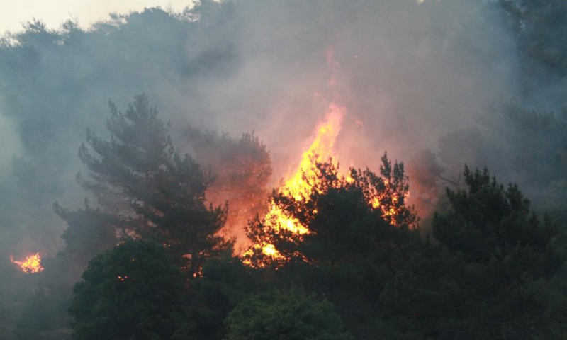 Wildfires are seen in forests in Akkar, northern Lebanon, on July 30, 2021. Lebanon battled rapidly spreading wildfires for the third day Friday in northern areas.Photo:Xinhua