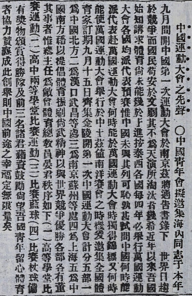 Advent of the National Games of China that raised the three Olympic Questions. The Olympics were known as the International Games in China then.