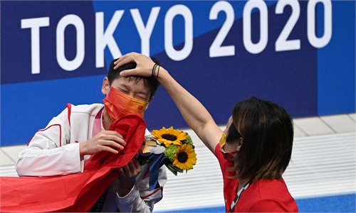 Quan Hongchan of China smiles after competing in women’s diving 10-meter platform final at the 2020 Summer Olympic Games on August 5, 2021, in Tokyo, Japan. Photo: CFP