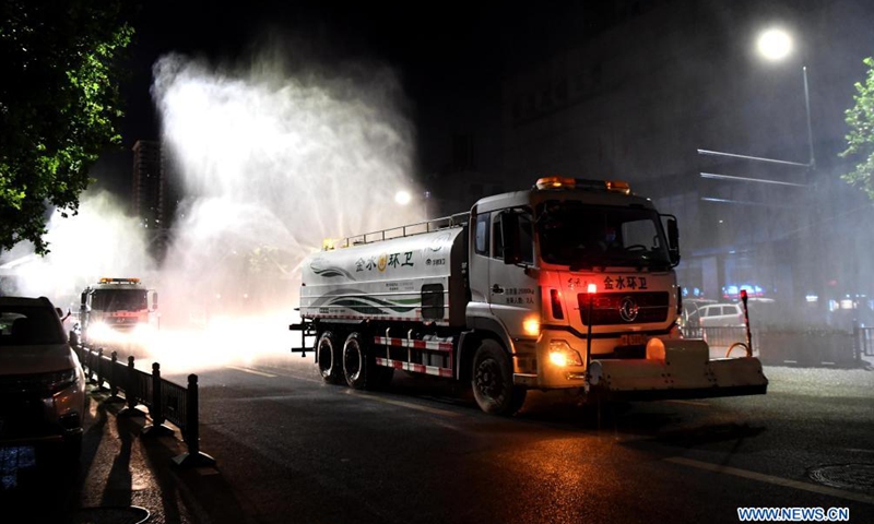 Vehicles disinfect a street to curb the lastest resurgence of COVID-19 in Zhengzhou, central China's Henan Province, Aug. 6, 2021.Photo:Xinhua