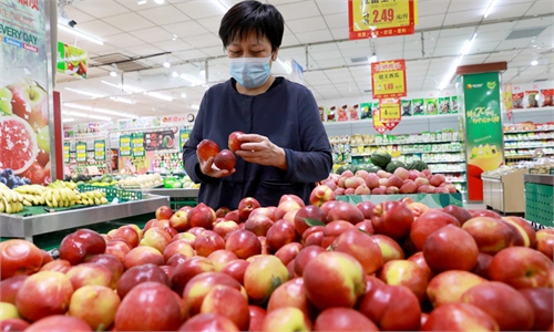 Consumers select vegetables at a supermarket in Handan City, North China's Hebei Province. File photo: Xinhua