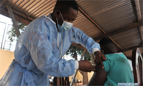 File photo of the Ghana National Theater against the backdrop of Gulf of Guinea (Xinhua/Lin Xiaowei)