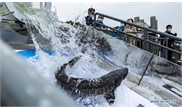 Photo taken on April 22, 2020 shows the release of the Chinese sturgeons to the Yangtze River in Yichang, central China's Hubei Province. About 10,000 second filial generation Chinese sturgeons were released into the Yangtze River on Wednesday to increase wild stocks of the rare species.Photo:Xinhua