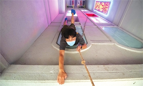 A 50-year-old man in East China's Shandong Province picks up an egg with a 4.6-meter giant iron chopsticks. Photo: Screenshot of a video posted by Pear Video